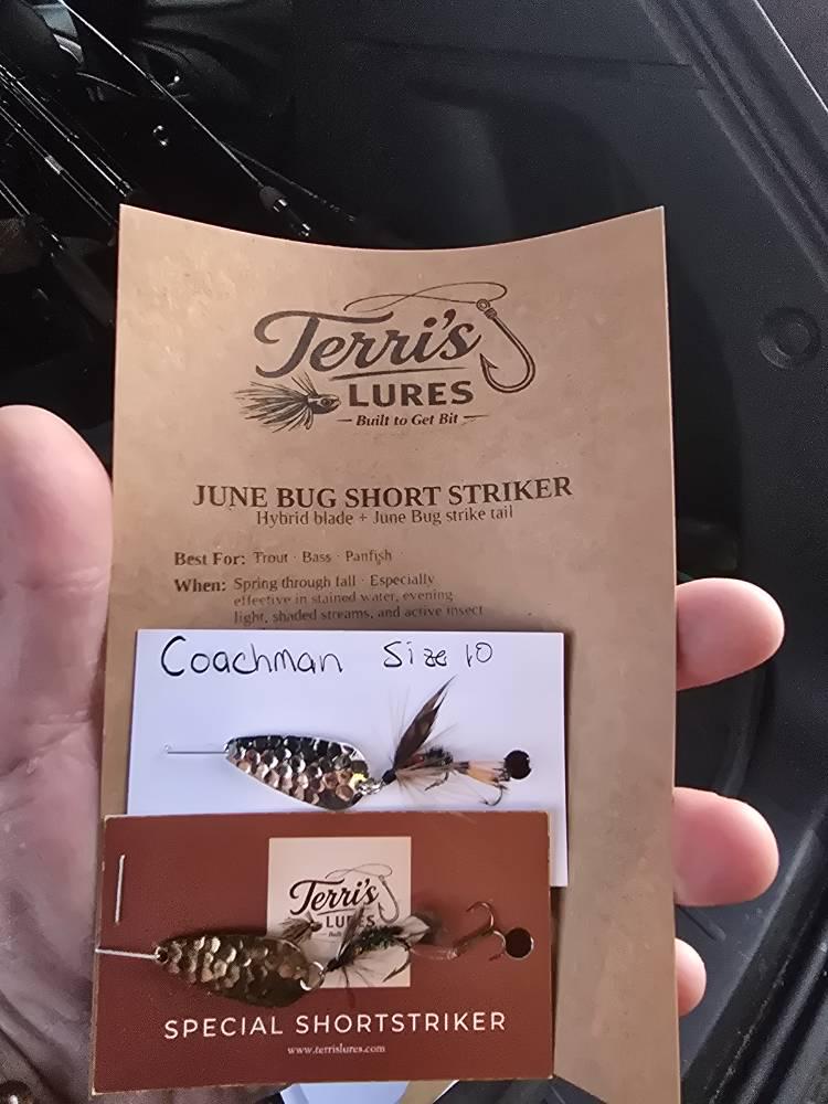 The June Bug is a hand-crafted hybrid lure that blends the flash and vibration of a hammered spoon with the lifelike movement of a traditional feathered fly. It’s designed for those moments when fish follow… but don’t fully commit. That’s where the short striker comes in.