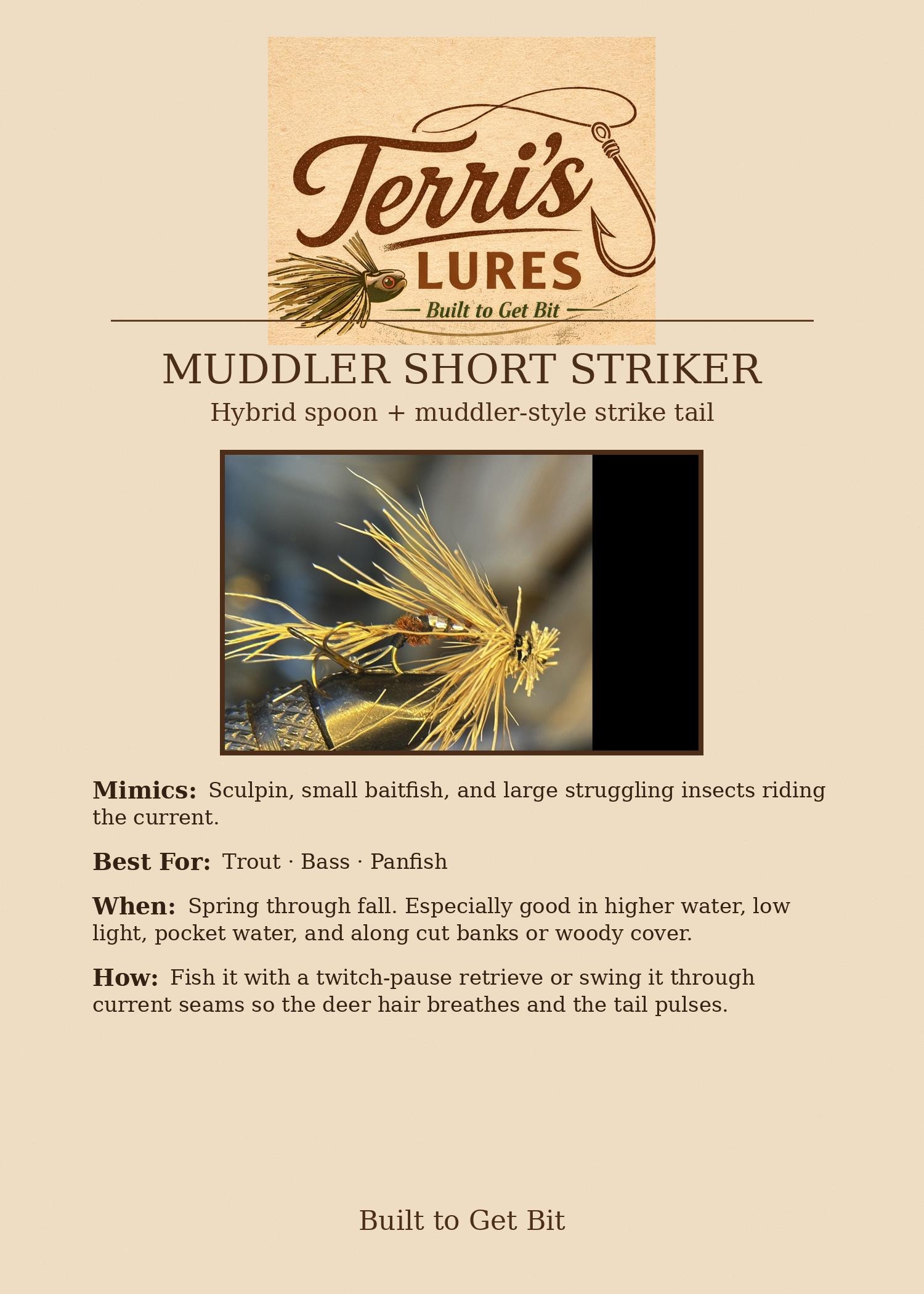 Each Deer Hair Muddler Shortstriker is hand-tied with care and built to fish hard. Natural materials mean no two are exactly alike, giving each lure its own unique action.